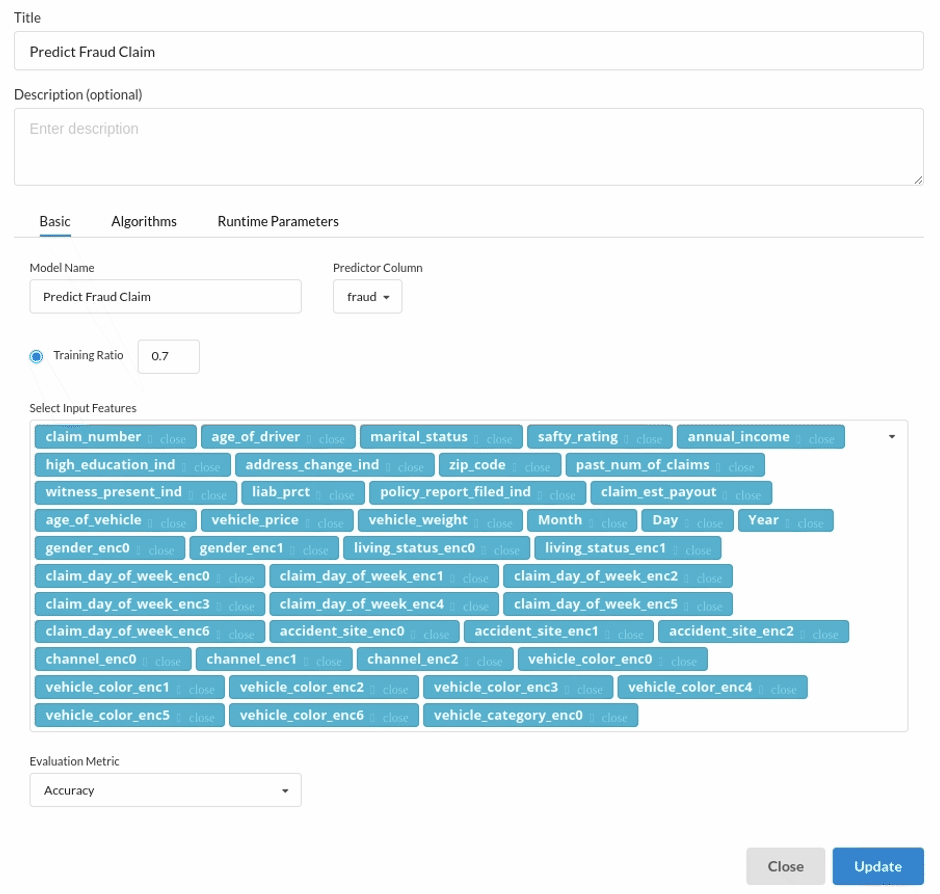 This usecase helps detect auto insurance fraud based on the insurance claim dataset. The challenge here is that frauds are significantly less common than legitimate insurance claims.Output can be used to be cautious about such claims.