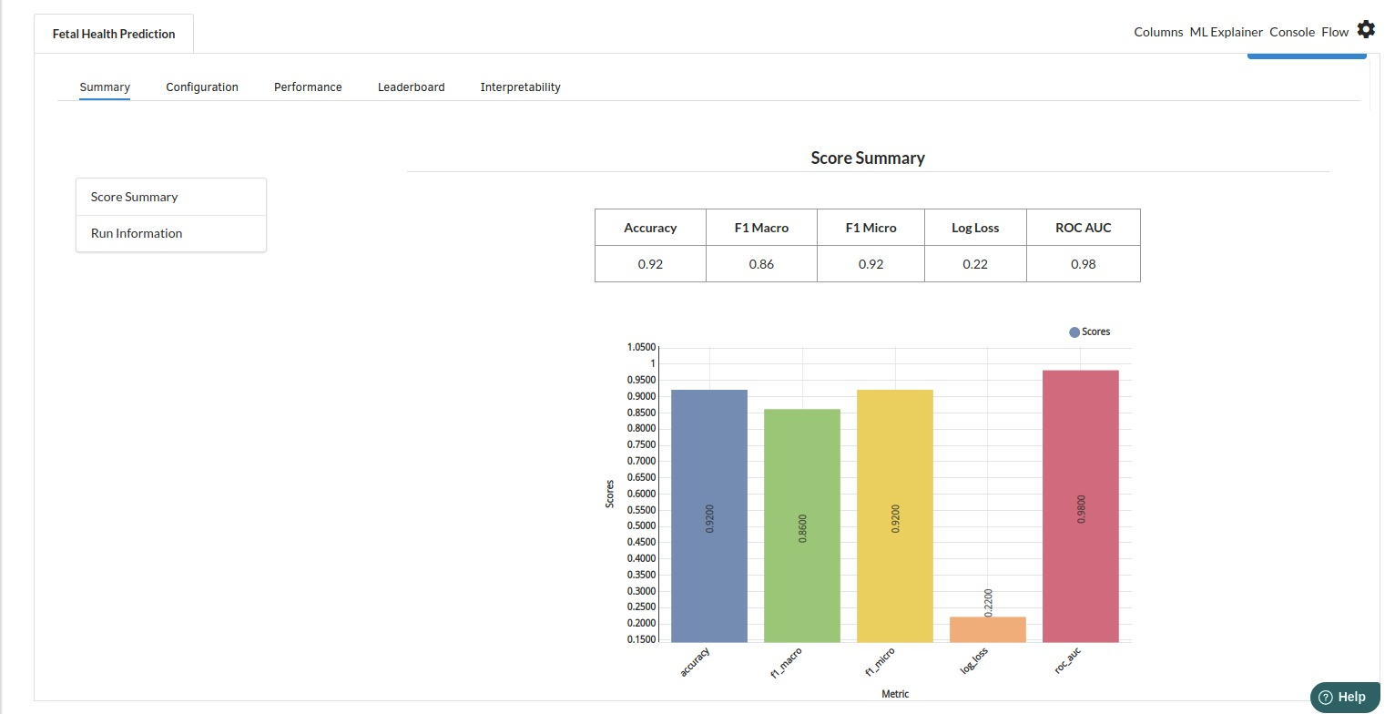 The third view under Ml explainer is Performance View . You can see confusion matrix ,ROC Curve, Precision vs Recall and Cumulative Gain Curve. Look at the built charts and decide if the charts are good enough for your model. The confusion matrix is a good indicator to understand how well your model was trained.