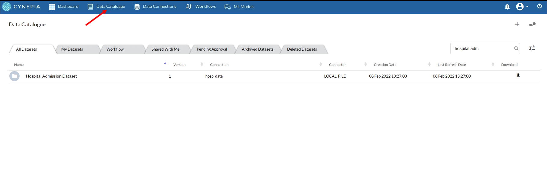 - Create a dataset for each dataset from the uploaded datasource in the data catalogue. Refer to Data Catalogue for more information on how to generate a dataset.
