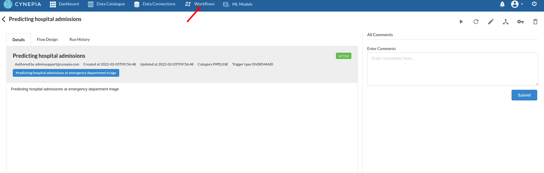- you will see an entry on the workflow's page listing the workflow once it's been created.