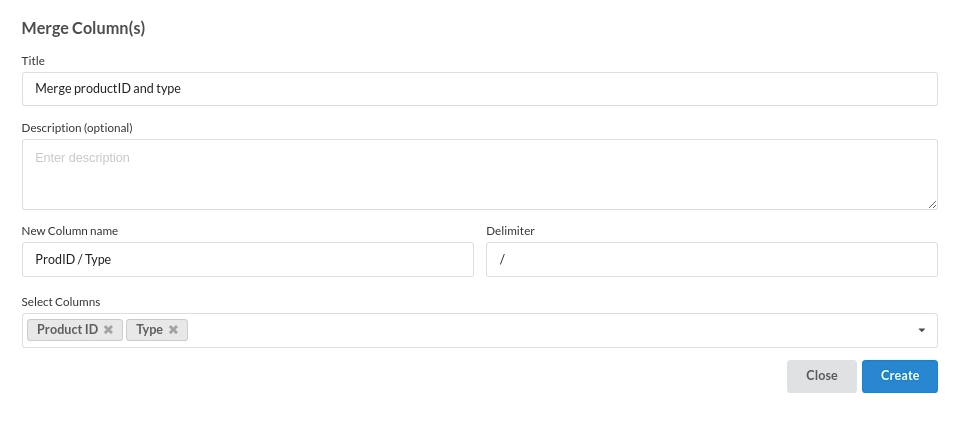 The Merge Columns transformer allows you to join multiple columns into a single column using a delimiter or any special character. for example if there two columns named country and state, You will be able to join both of the column values.